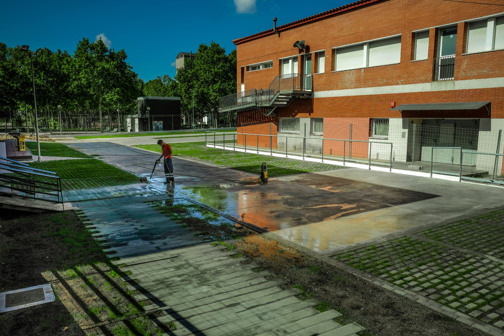 A part, la vegetació i els materials amb acabats de colors clars serveixen per a evitar sobreescalfaments a l’estiu. D’aquesta manera, gràcies a la nova distribució i a la vegetació, la bona filtració de l’aigua, els colors clars i l’absència de productes químics, es millora la qualitat física i ambiental del recinte.
