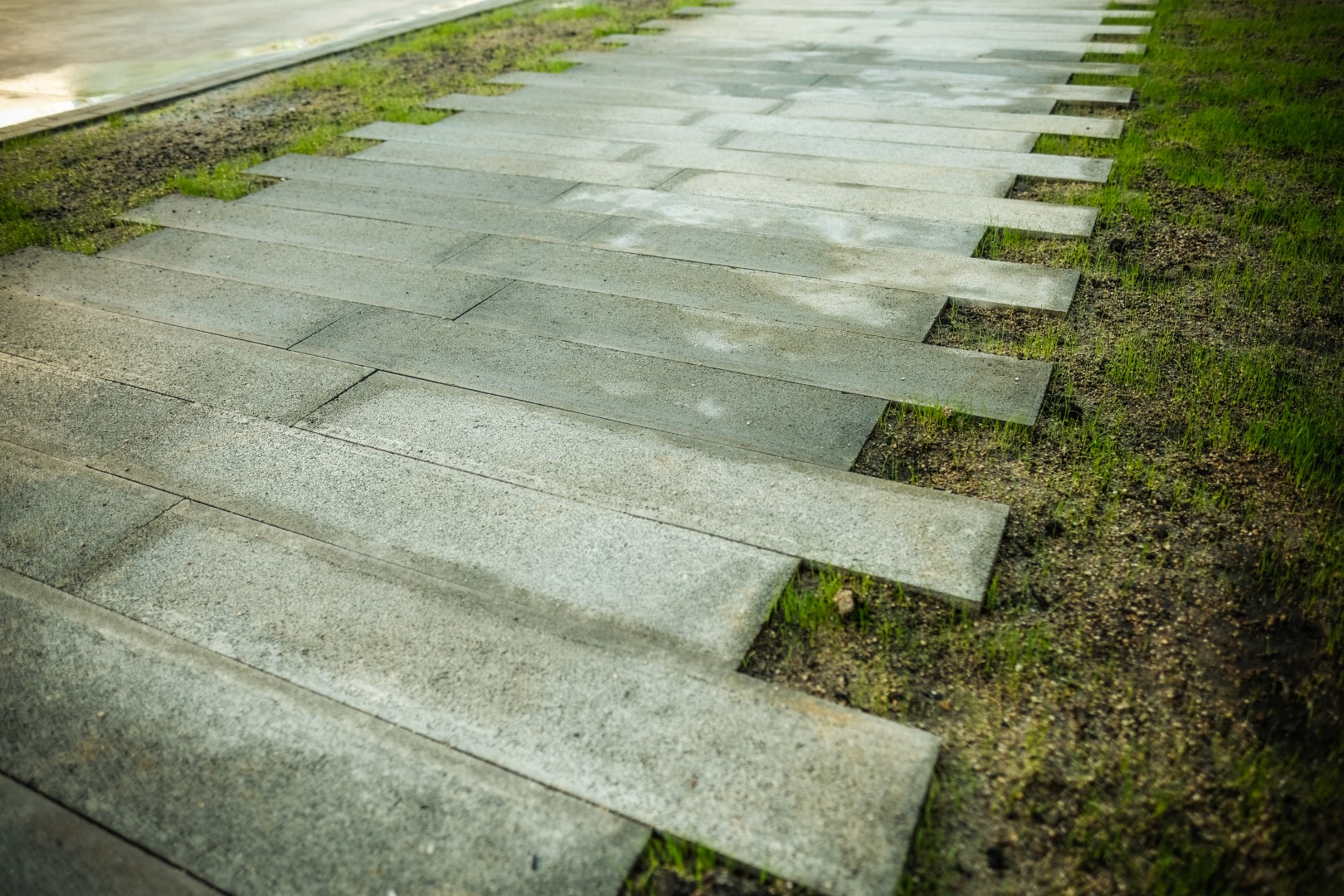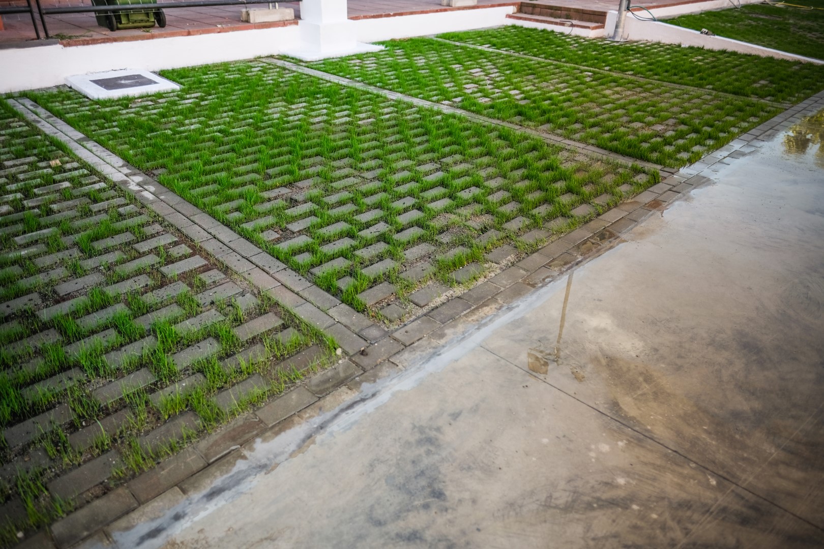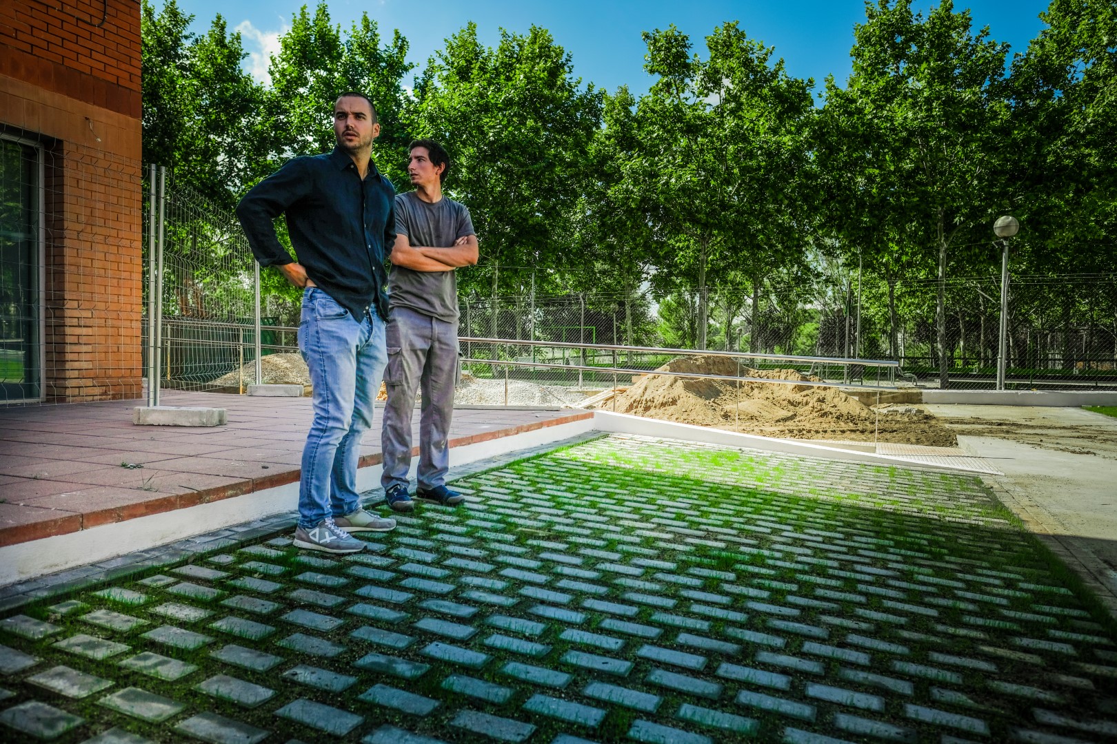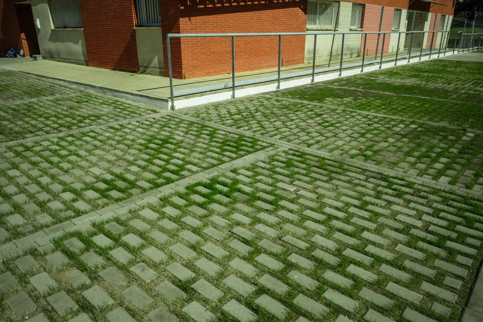 Les places d’aparcament, que són les zones de drenatge del projecte, estan formades per només dos materials: llambordes de formigó i terra vegetal. Les llambordes tenen una grandària de 10 x 5 cm i les juntes de terra vegetal són de 5 cm en tota la parcel·la, excepte en les vores d’aquesta, on no hi ha cap mena de junta per a poder definir els seus límits sense necessitat de pintures o revestiments de composició química.