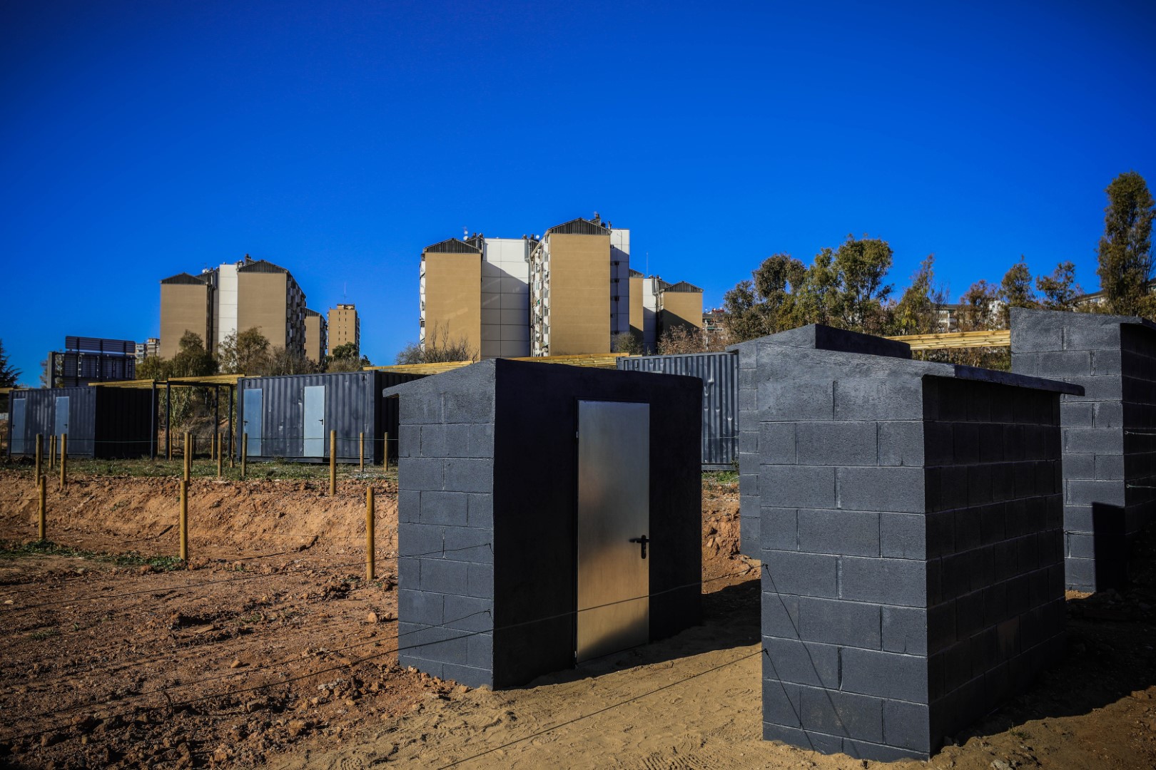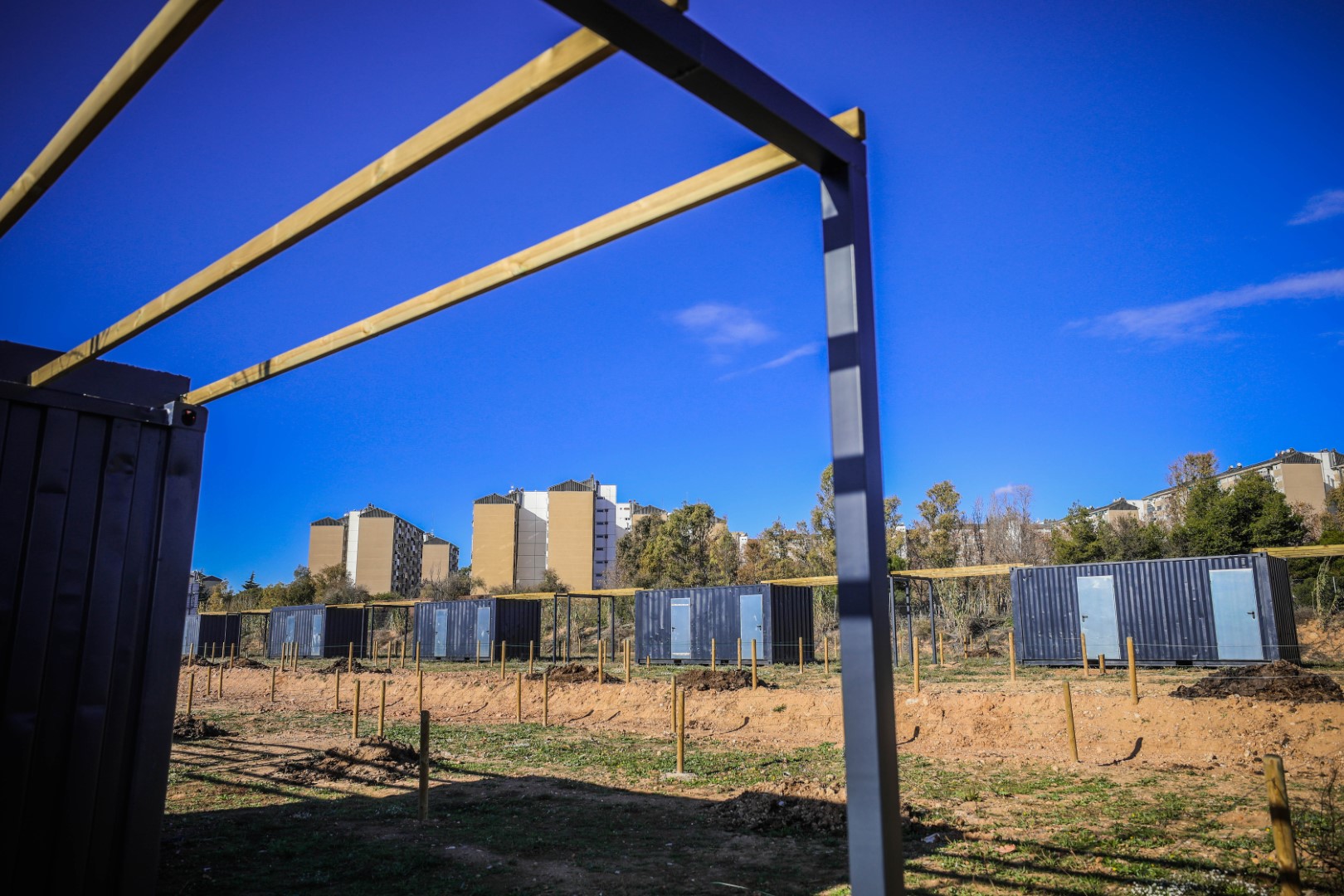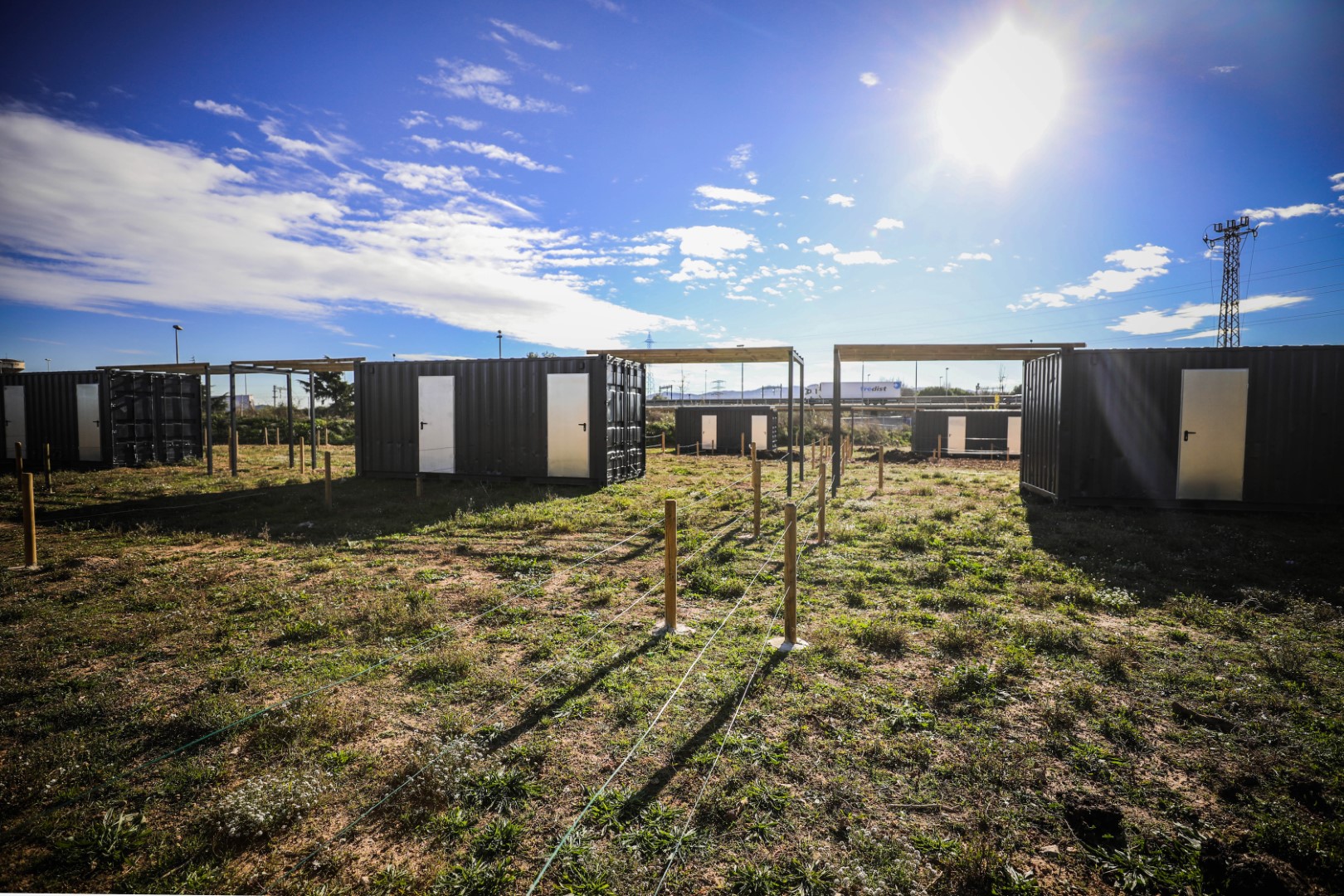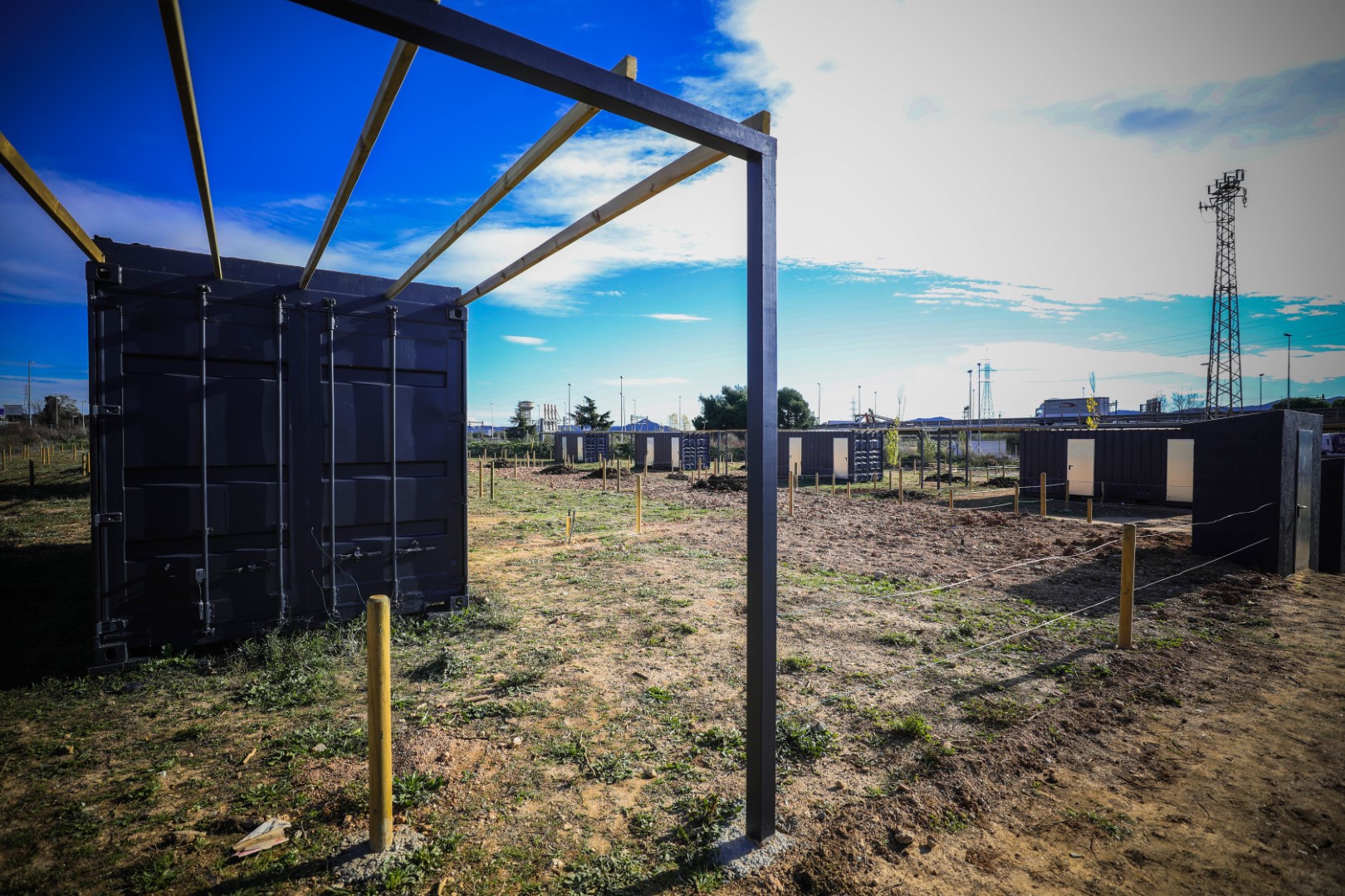 A nivell d’edificació, el projecte només consta d’unes petites casetes, que són contenidors marítim reciclats, que serveixen com a espai d’emmagatzematge de cada mòdul formada per quatre parcel·les d’horts i la zona de banys i espais de neteja. En el perímetre de la coberta se situen els canelons de PVC que recullen i canalitzen les aigües pluvials perquè puguin ser usades per a regar els horts.