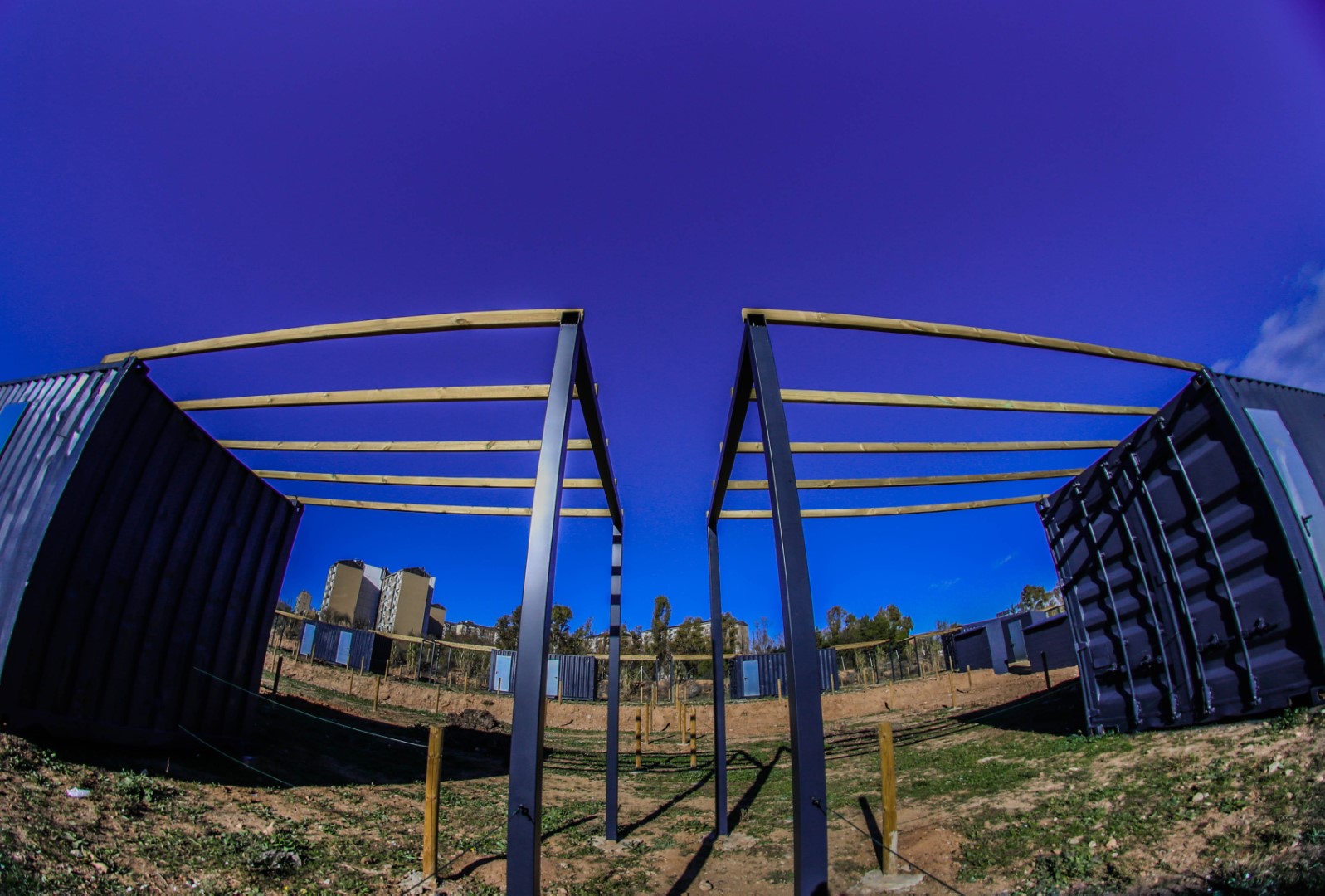 Els contenidors son modificats per a ser usats com a armaris on guardar les eines. També s’usen per a definir l’espai i com a suport per a col·locar una pèrgoles que s’usen com a zona d’ombra i accés a la parcel·la.